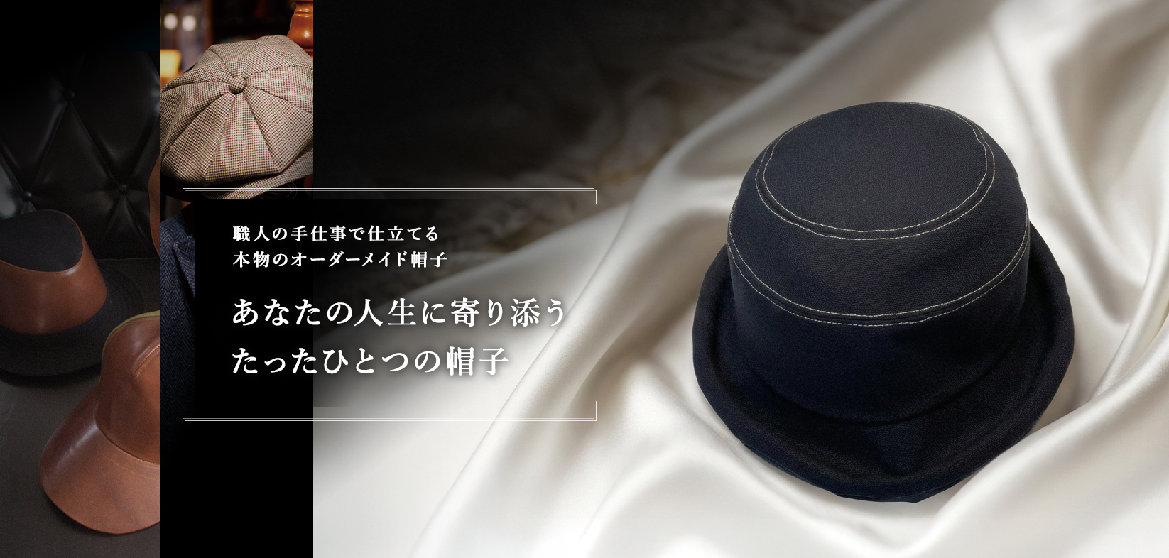 量産工程では実現できない、シルエットの美しさや被り心地の安定感は、豊富な制作経験に裏打ちされた確かな技術によるものです。