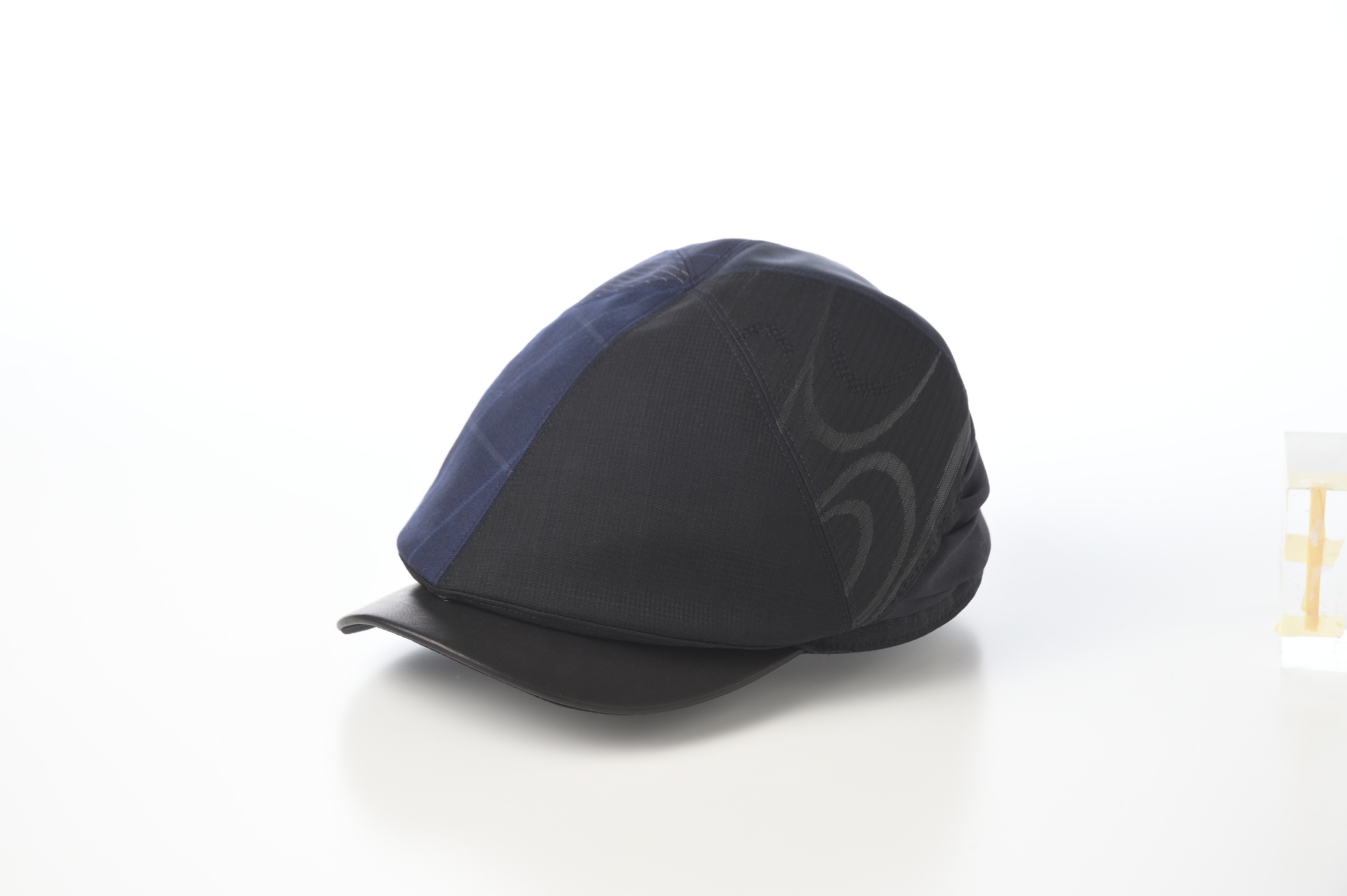 布帛のキャップながら、どこかレザーキャップのような重厚感も漂わせる、異素材の美しいコントラストが特徴です。