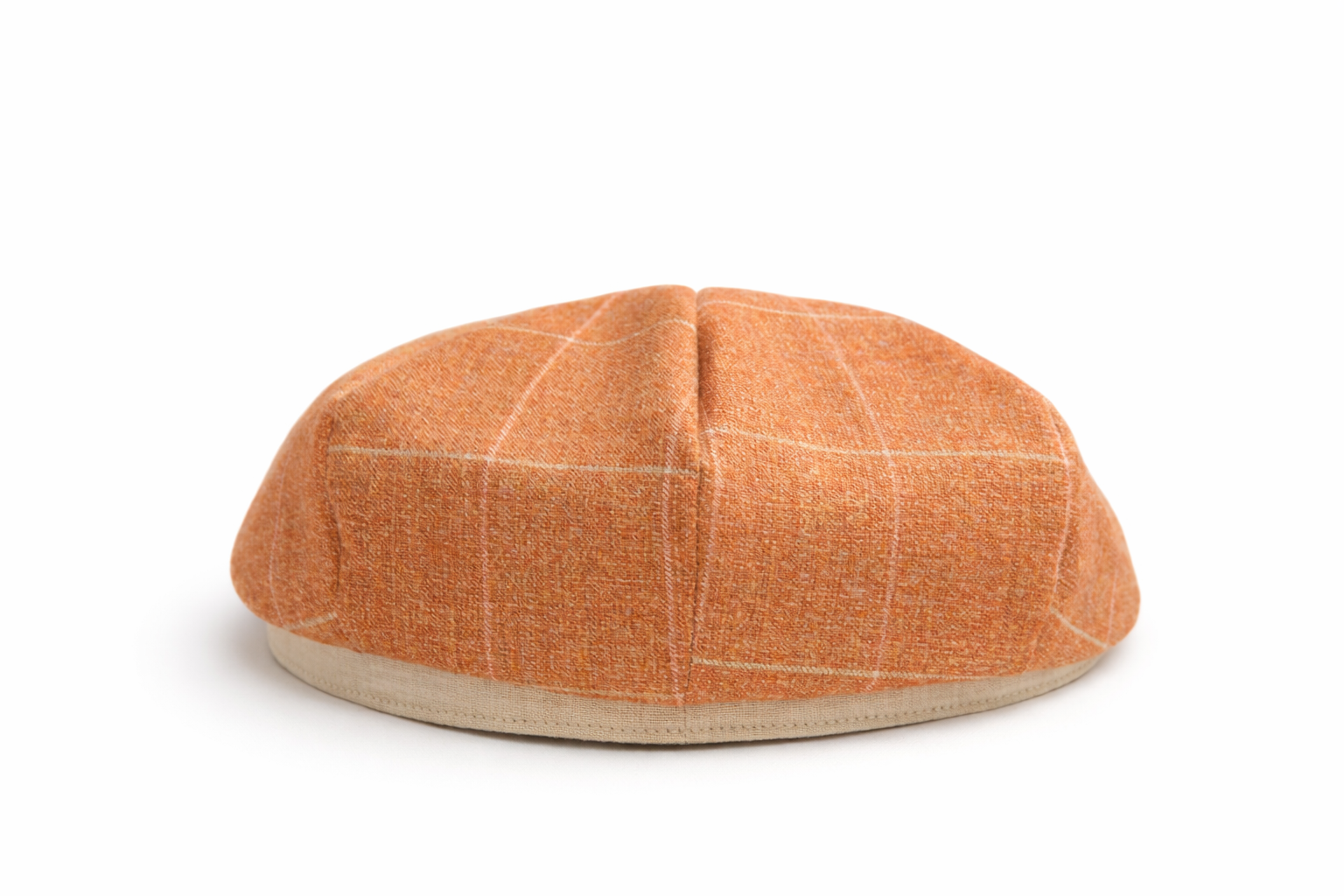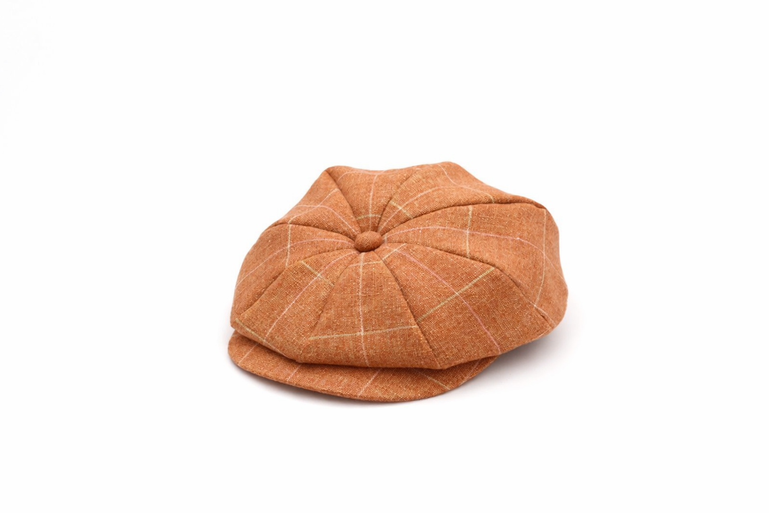 Newsboy キャスケットの系譜にありながら、ボリュームを抑え、ハンチング寄りのすっきりとした被りに仕上げています。
