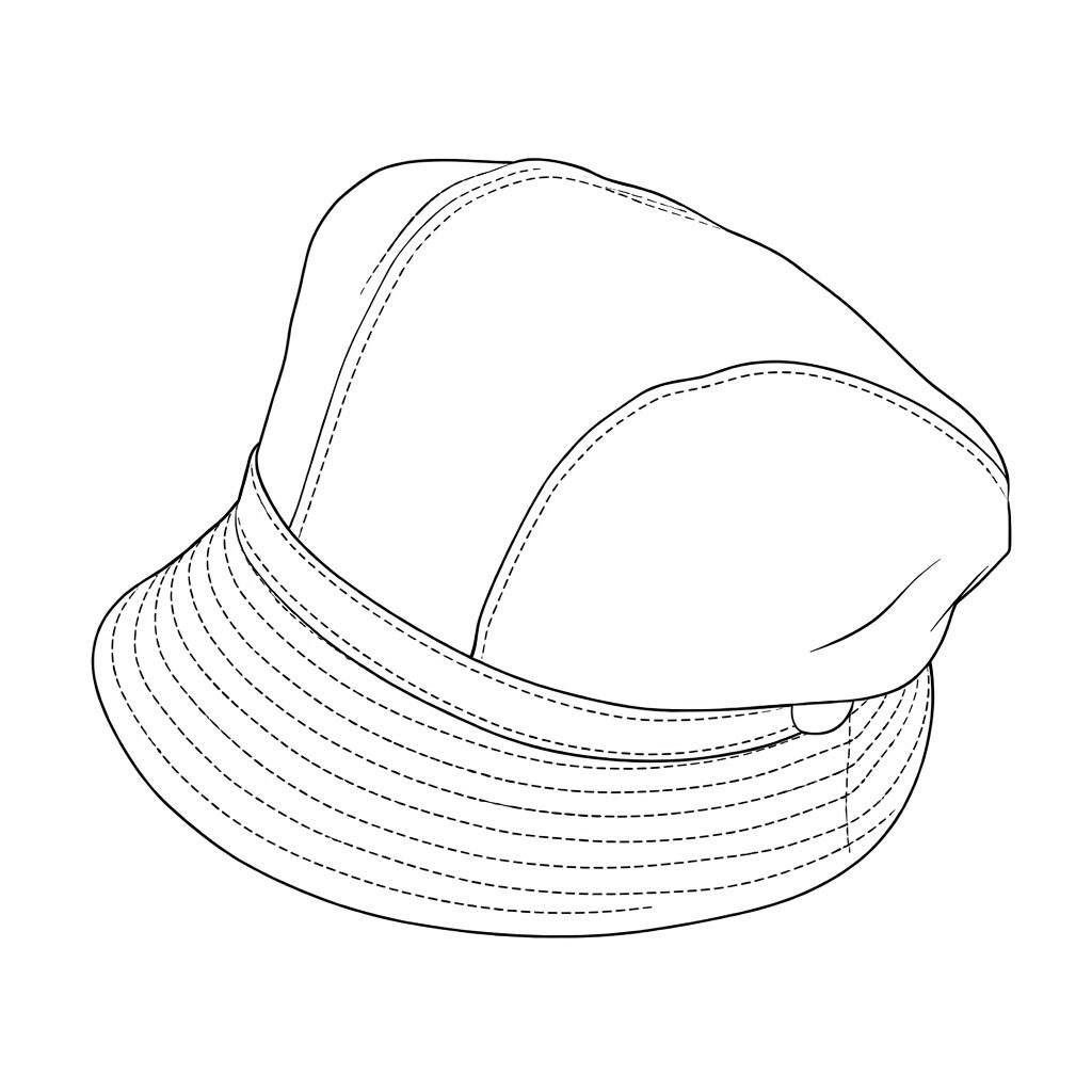 クラシカルなハンチングのクラウン形状をベースに、ブリムを一周配したハイブリッドデザインのハット。
