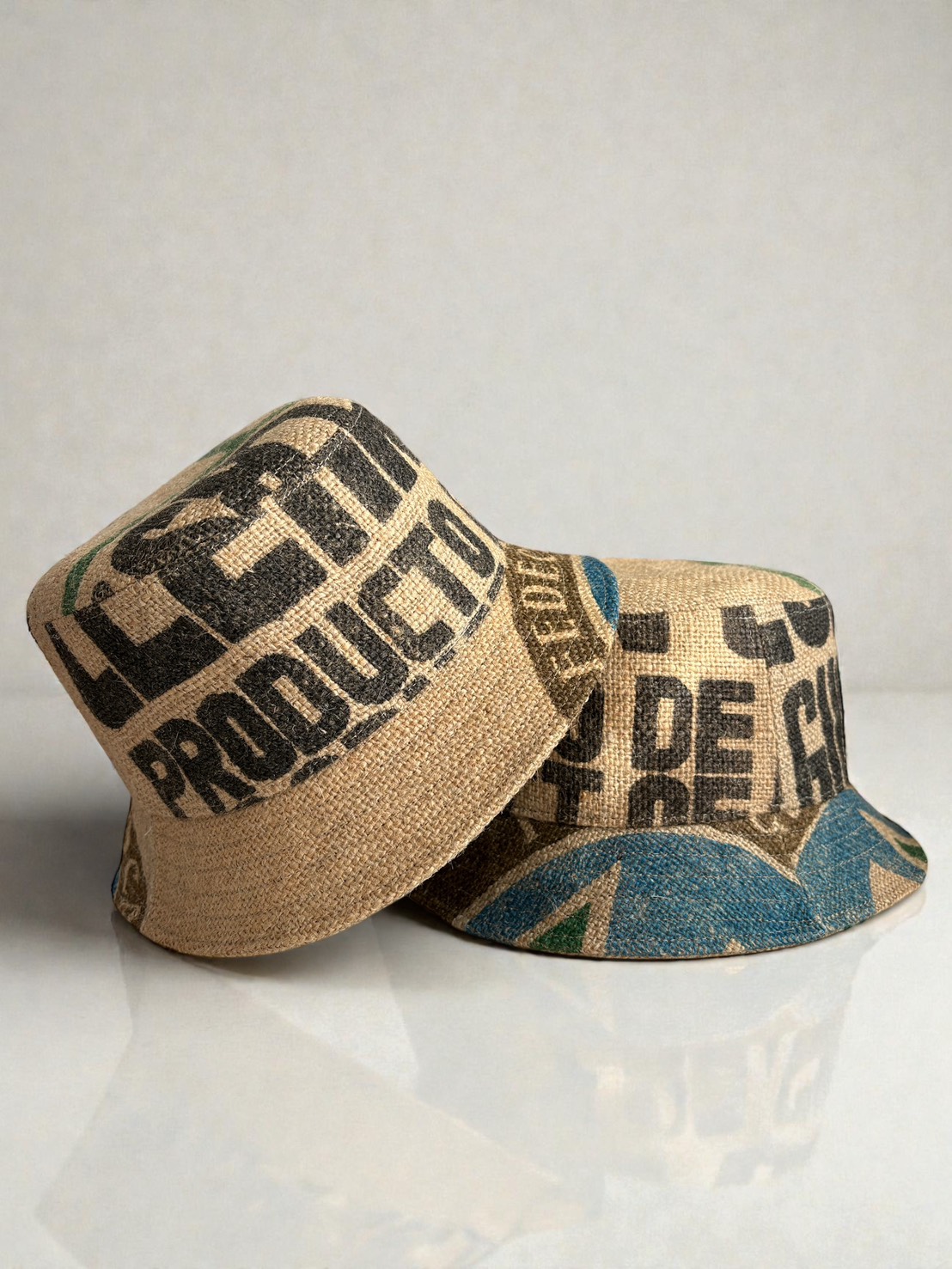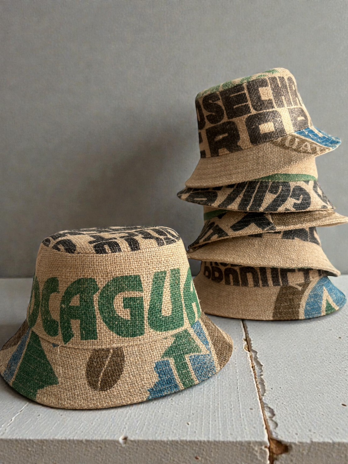 実際にコーヒー豆の輸送に使われていた麻袋(ジュート)を素材としてお預かりし、帽子へと再生しました。